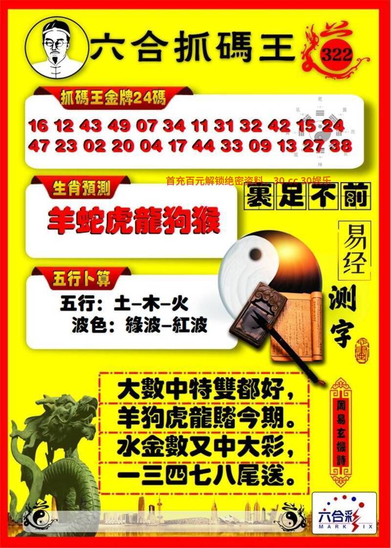 | 322期:琴棋书画【棋画书】开羊47准 |